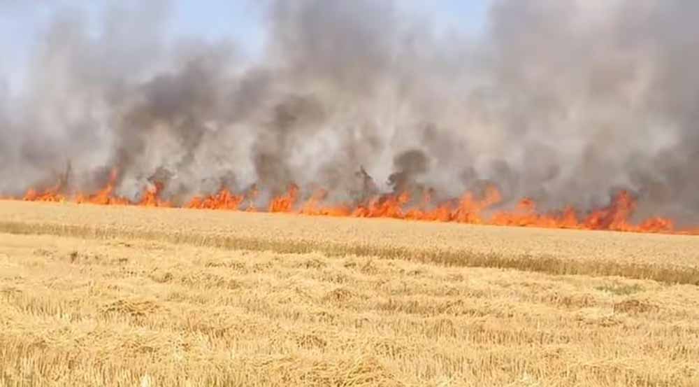 खलिहान में रखे गेहूं में अचानक लगी आग